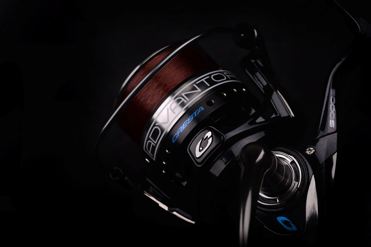 De Cresta Advantor S feedermolen is speciaal voor de feedervisser gemaakt! Aan werkelijk alle benodigdheden is gedacht. Zo heeft de molen een elegant, compact design en een relatief grote spoel. Zo wordt er een hoge inhaalsnelheid gecreëerd. De ondiepe spoel voorkomt onnodige backing en beperkt dus het gewicht effectief. De lijnclip en spoelrand zijn perfect glad en rond afgewerkt zodat de (gevlochten) lijn hierop niet beschadigt. De speciale driehoekige vormgeving zorgt ervoor dat de lijn goed achter de clip blijft zitten.