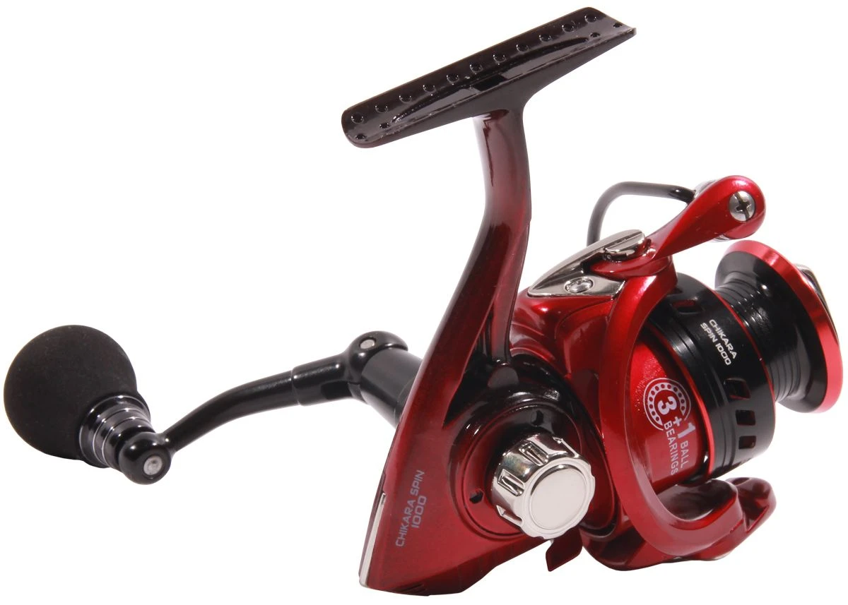 De Ultimate Chikara Spin molens vallen op door het fraaie uiterlijk en de vele hoogwaardige componenten die voor uitstekende prestaties zorgen. Deze compacte molens zijn perfect voor het lichte tot zeer lichte spinvissen zoals het ultra light vissen of streetfishing op snoekbaars, baars en forel. De Chikara is uitgerust met een zeer gevoelige slip die ook bij een langdurige dril een regelmatige weerstand geeft en een slinger met een grote knop van EVA die zorgt voor extra comfort en waar bovendien meer kracht mee gezet kan worden. De molen heeft een rode basiskleur met zwarte accenten die zorgen voor een fraaie uitstraling. Kortom, een hoogwaardige molen met een uitstekende prijs-kwaliteitverhouding!